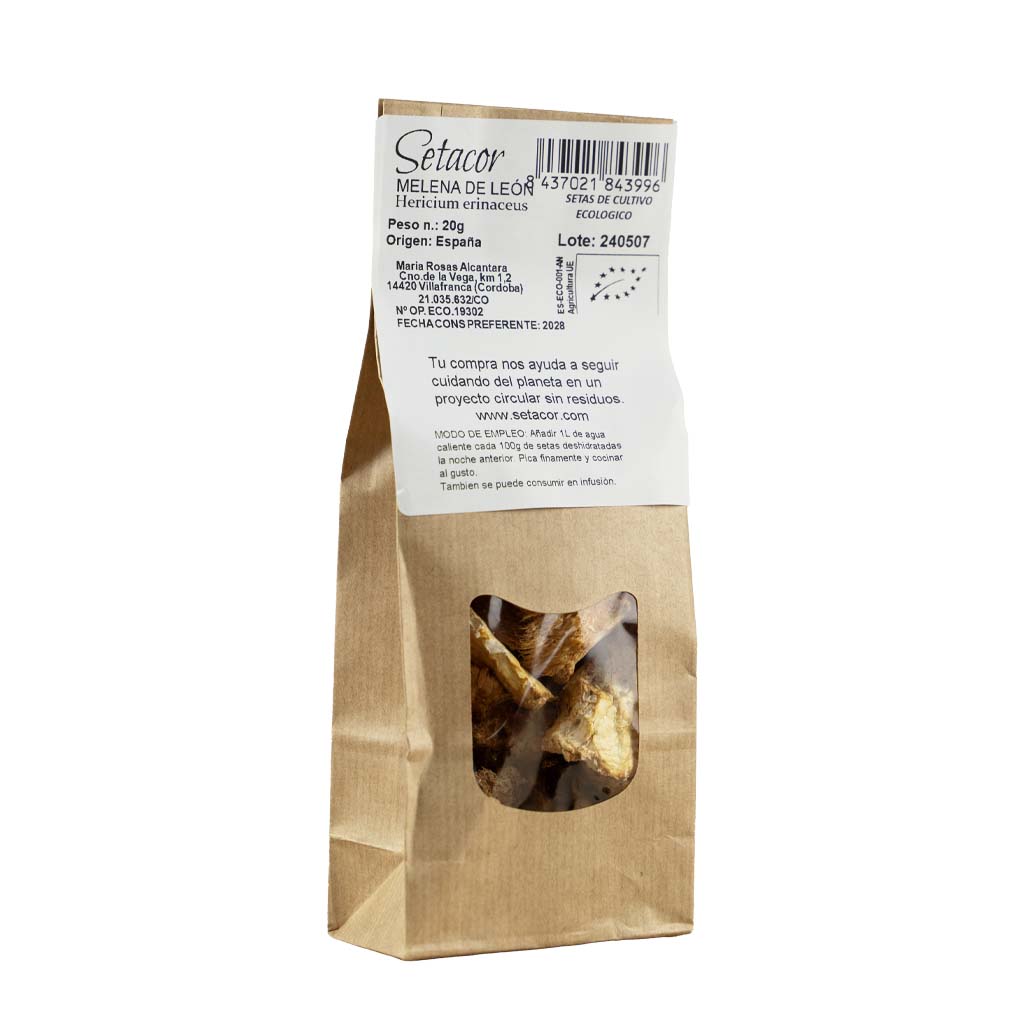 Para cocinar la melena de león deshidratada basta con sumergirlas en agua la noche anterior. Debemos añadir 1L de agua (mejor si es caliente), por cada 100g de seta Sin embargo, hay muchas personas que añaden más de un litro porque ese líquido resultante de la hidratación es «oro puro». Contiene mucho sabor, aromas y nutrientes por lo que se puede usar como «fumet» o base para hacer salsas, sopas o croquetas. El peso de las setas hidratadas se multiplica por 10 respecto a las deshidratadas.