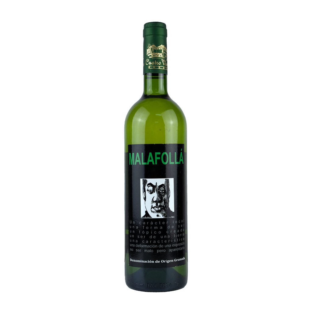 El vino malafollá blanco es un vino de Granada limpio y cristalino de color amarillo con reflejos verdosos
